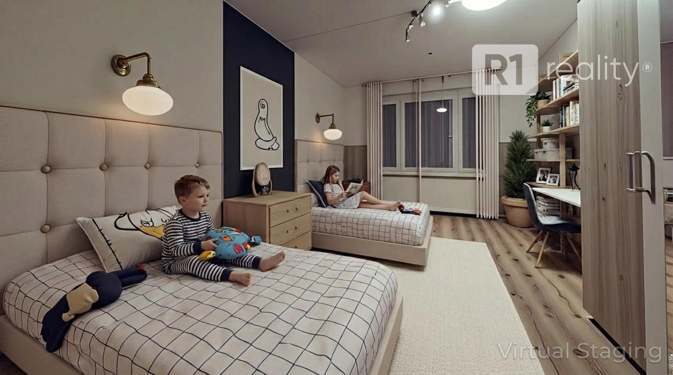 Každý detail bytu bol udržiavaný s dôrazom na funkčnosť a pohodlie, aby ste sa mohli okamžite nasťahovať a začať si užívať nový životný priestor. V ponuke sú umiestné dizajnové R1realitynávrhy (foto Virtual Staging), ako môže vyzerať Vaše nové bývanie.
