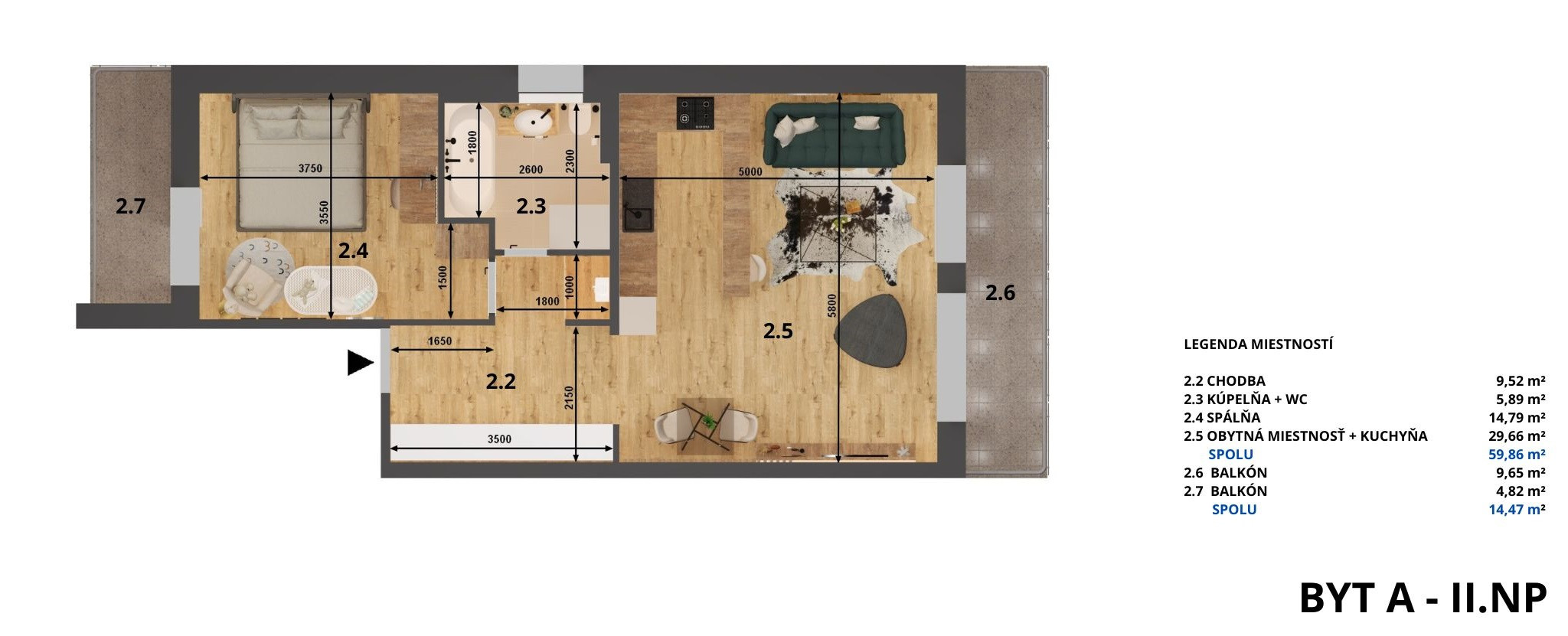 | Typ bytu: | 2-izbový byt |